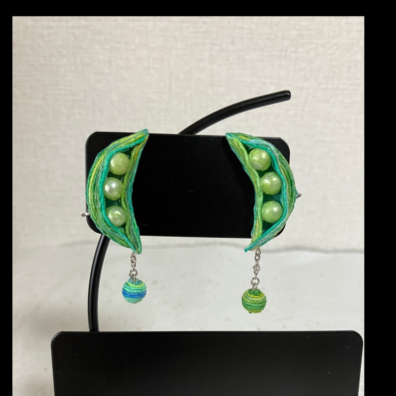 豆の部分はビーズを極薄の和紙でくるんで